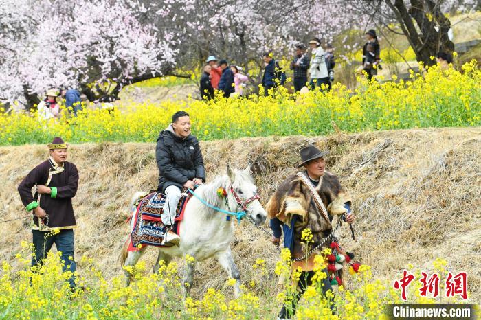 圖為在桃花園內(nèi),游客體驗(yàn)騎馬。貢嘎來(lái)松 攝