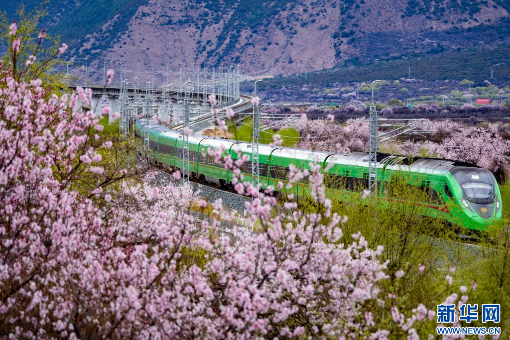 雪域高原桃花開,復(fù)興號(hào)上賞春光。拉林鐵路的車票,猶如一張賞花請(qǐng)柬,吸引了眾多游客前來雪域高原賞桃花。