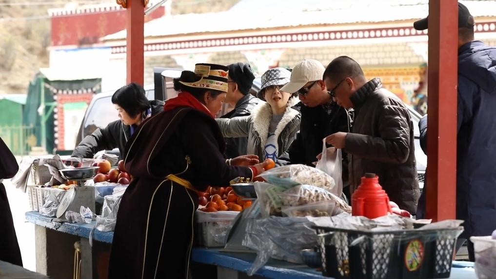 近年來(lái),隨著政府支持力度的不斷加大和林芝旅游的日漸火爆,羌渡崗村的村民們?cè)诩议T(mén)口吃上了“旅游飯”。村民們操著一口流利的普通話在水果攤前招攬生意,游人們也在村民的吆喝間購(gòu)入新鮮的水果。