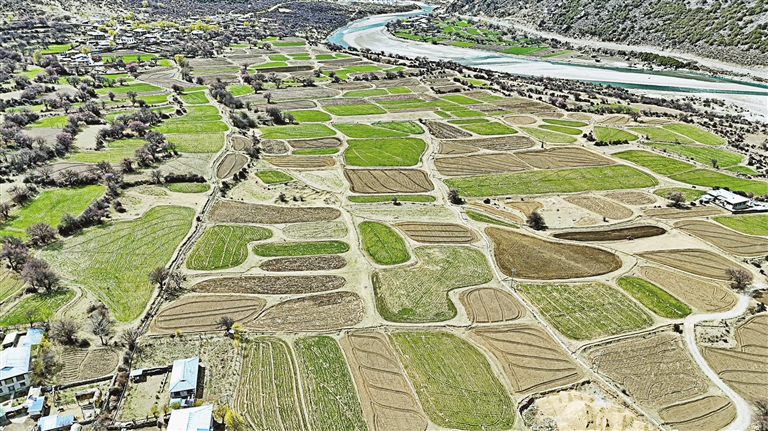 “轟隆隆,轟隆隆……”旋耕機(jī)的轟鳴聲響徹田野,記者一行循著聲音走向田地間,村民曲美仁增家的小白狗也跟在我們身后,在春天的田野上吠叫著找尋主人。