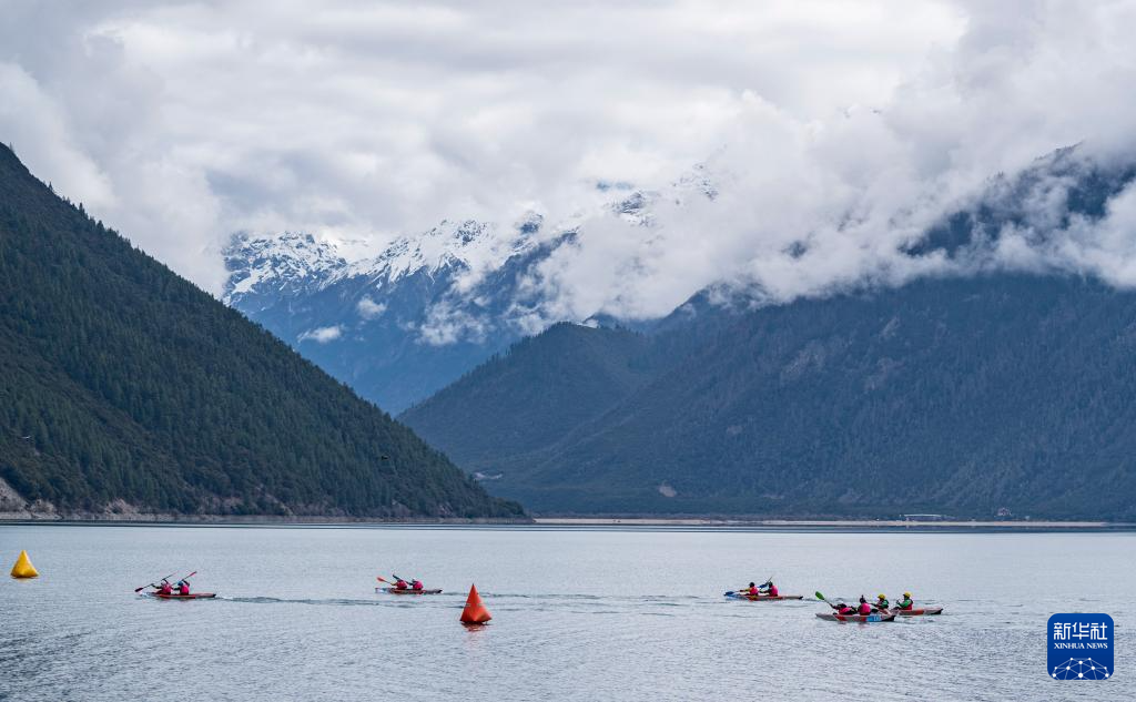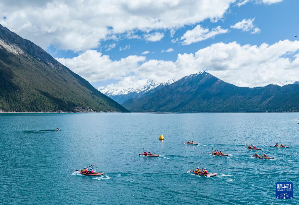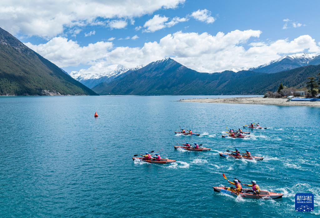 4月20日,2024年巴松措國(guó)際漂流公開(kāi)賽在西藏林芝市工布江達(dá)縣開(kāi)賽。30余支隊(duì)伍在巴松措的湖面上展開(kāi)角逐,完成兩人漂流艇競(jìng)速賽和四人漂流艇排位賽的比拼。