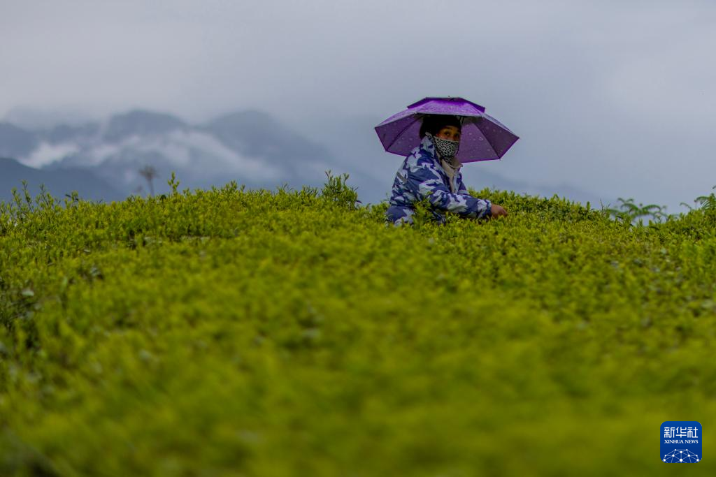 墨脫縣背崩鄉(xiāng)格林村的一位村民在茶園中采茶(4月24日攝)。新華社記者 姜帆 攝