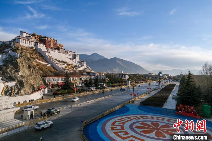 資料圖為2024年1月1日,車輛途經(jīng)布達拉宮。江飛波 攝