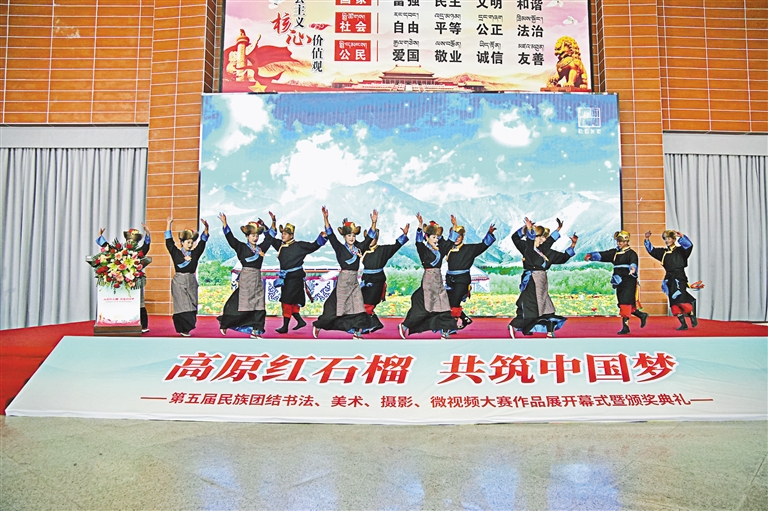 28日,“高原紅石榴 共筑中國夢”第五屆民族團結(jié)書法、美術(shù)、攝影、微視頻大賽作品展開幕式暨頒獎典禮在西藏自然科學(xué)博物館舉行。此次展覽將持續(xù)至5月8日。