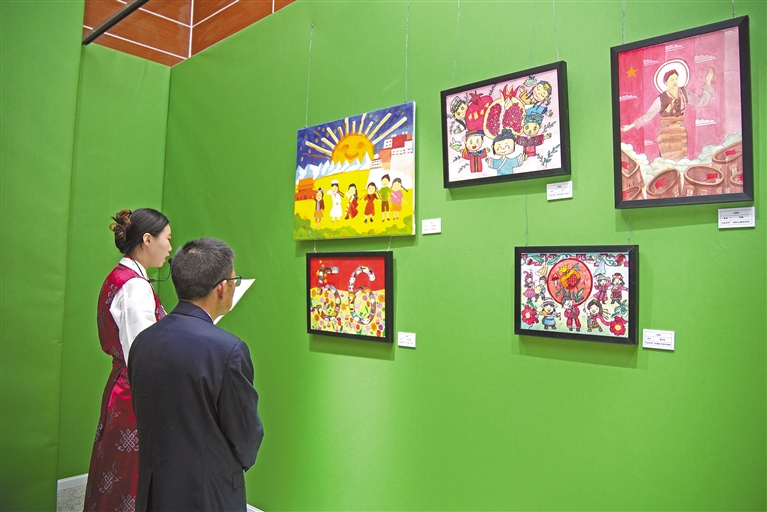 美術(shù)一等獎作品《民族團結(jié)·多彩童年》。作者 趙瑞