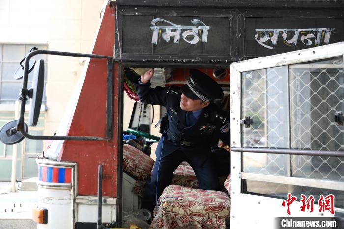 圖為“五一”假期,吉隆出入境邊防檢查站民警卜濤在吉隆口岸車輛驗(yàn)放通道檢查出境車輛。肖富貴 攝
