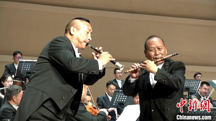 圖為在音樂會上嗩吶、笛子與樂隊(duì)演奏。貢桑拉姆攝
