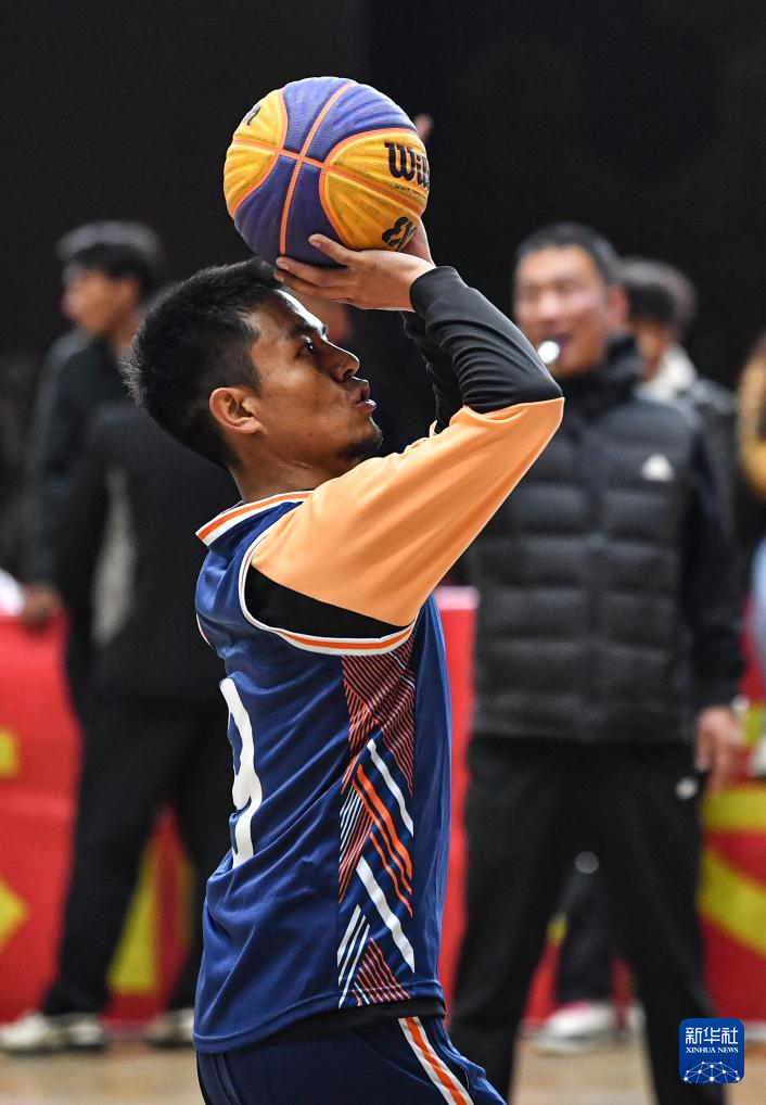 5月10日,西藏廣播電視臺(tái)隊(duì)球員西熱多久在比賽中投籃。新華社記者 晉美多吉 攝