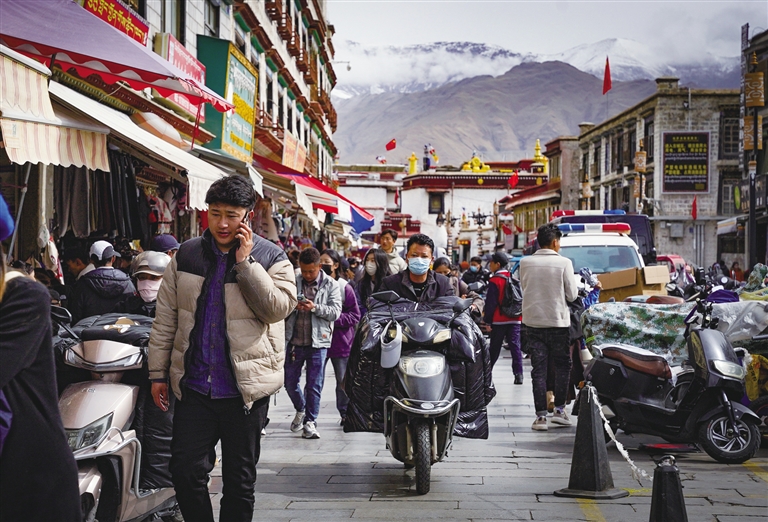 “往年,我的呢子大衣早都束之高閣了。今年,你瞧我還穿在身上呢!有一種冷叫‘拉薩的初夏’!”記者在街頭遇到了拉薩市民卓嘎女士,她調(diào)侃地說(shuō)。