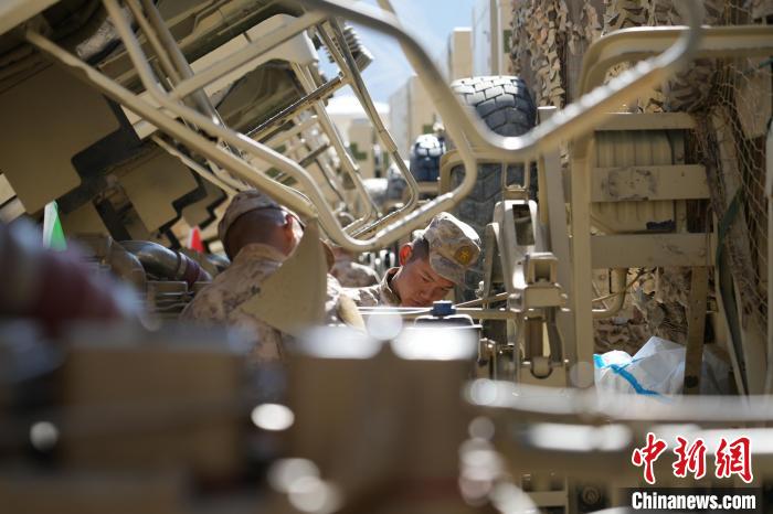 圖為某旅官兵正在對輪式車輛進行檢查維護。范昊天 攝
