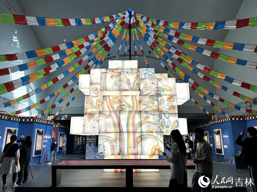 “曼唐——藏醫(yī)藥精品唐卡展”藝術(shù)裝置。人民網(wǎng)記者 李思玥 攝