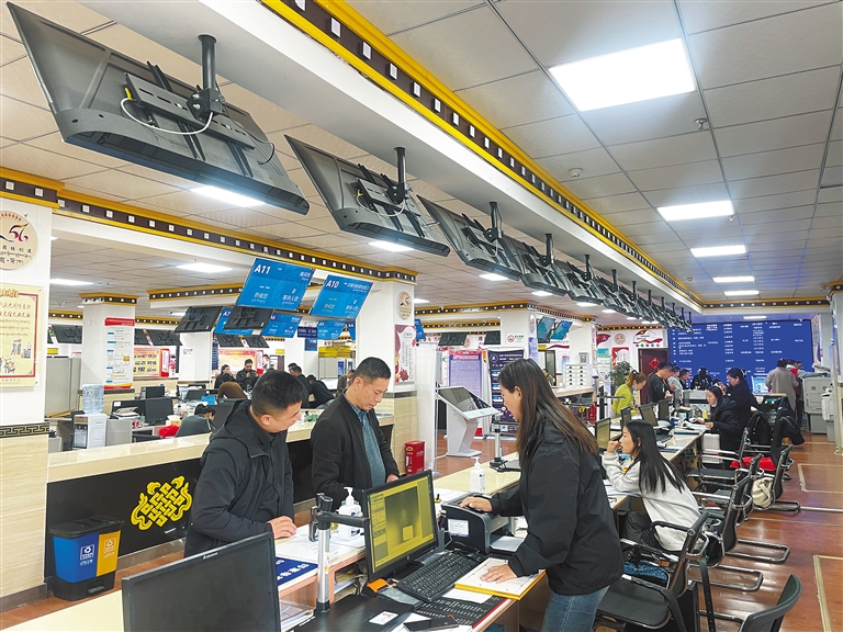 窗口是服務(wù)群眾的第一線。走進(jìn)山南市政務(wù)服務(wù)中心,只見在各服務(wù)窗口前辦理業(yè)務(wù)的群眾依次排隊(duì)、秩序井然,工作人員有條不紊地為群眾提供貼心服務(wù),耐心細(xì)致地為群眾答疑解惑。