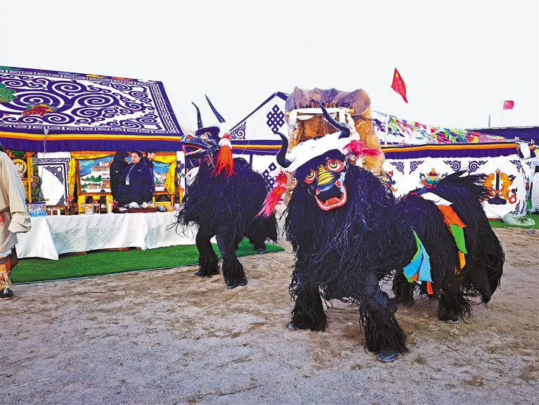 由300名演員將象征平安、吉祥的馬、牦牛、牛角、五彩哈達(dá)等元素融入表演全過程,藝術(shù)地展現(xiàn)獨有的開湖祈福場景。