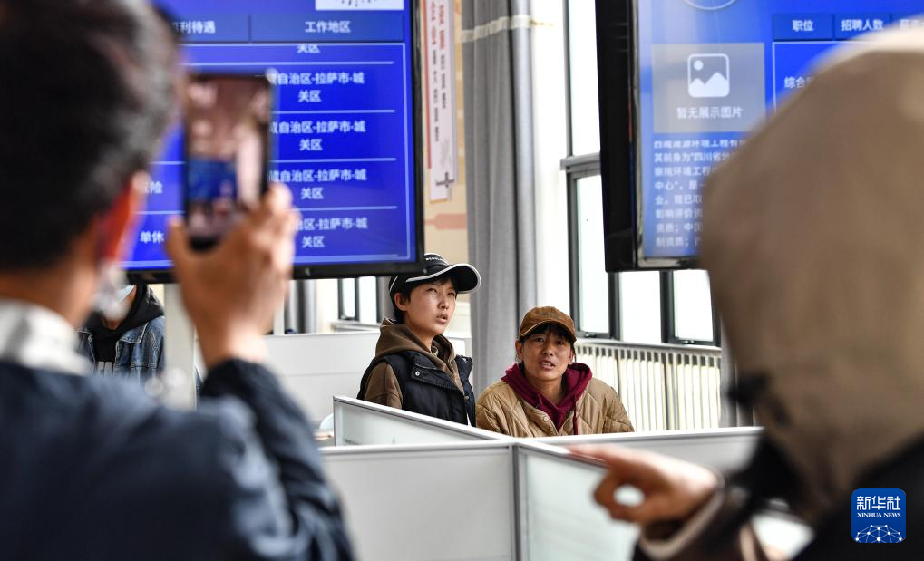 5月24日,求職者在招聘會(huì)現(xiàn)場(chǎng)查看崗位信息。新華社記者 晉美多吉 攝