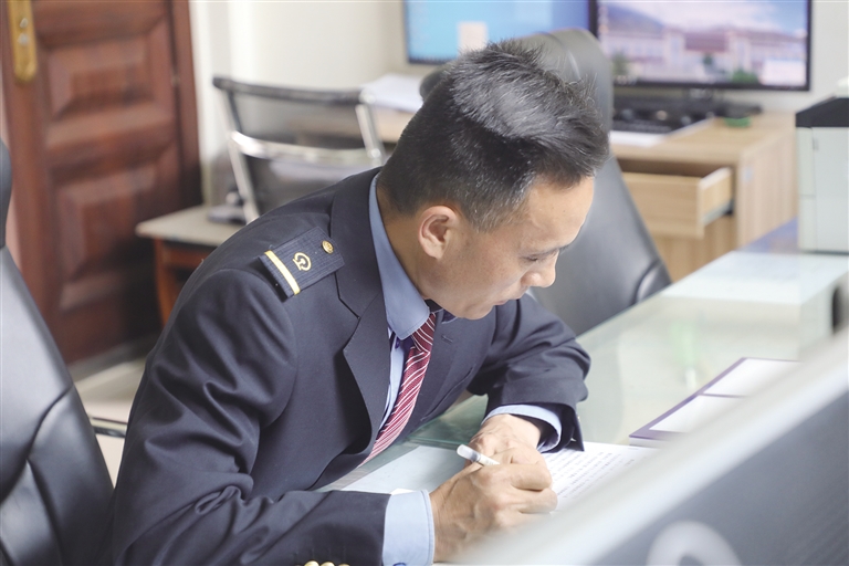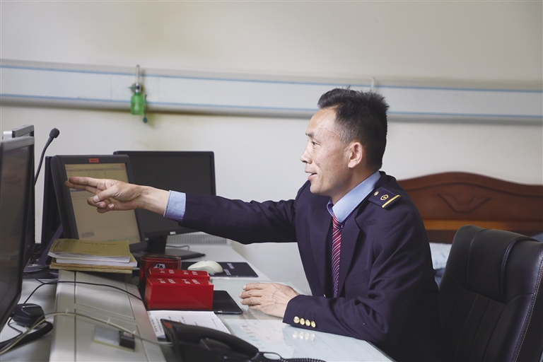 “這里的工作雖然看似單調(diào),實則責(zé)任很大?!辟R文貴身穿深藍(lán)色的鐵路制服,胸前佩戴著亮閃閃的工牌,顯得精神抖擻。他像一名嚴(yán)謹(jǐn)?shù)膽?zhàn)士,緊盯著操作臺,確認(rèn)信號,口呼手指?!∽鳛檐囌局蛋鄦T,賀文貴每天的任務(wù)主要是監(jiān)視列車進路和區(qū)間動態(tài),保證行車安全。工作中的他認(rèn)真負(fù)責(zé),嚴(yán)格執(zhí)行標(biāo)準(zhǔn)化作業(yè),他常說:即使單人值守,該有的程序、作業(yè)步驟一項都不少,作業(yè)標(biāo)準(zhǔn)必須嚴(yán)格執(zhí)行,保證作業(yè)安全。