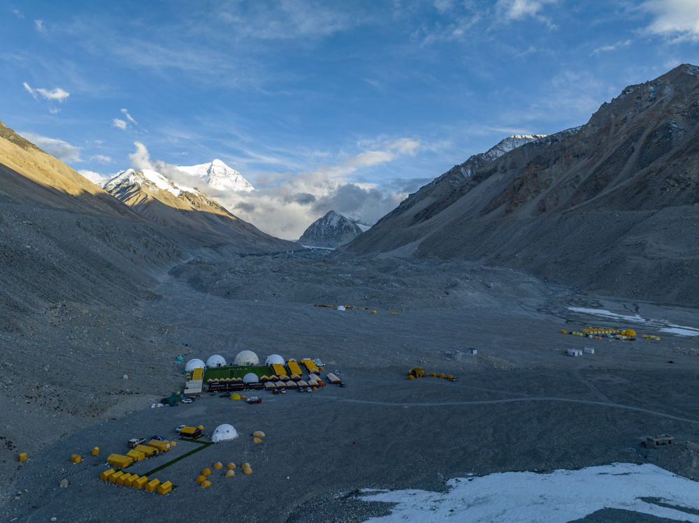 珠峰登山大本營(5月21日攝,無人機(jī)照片)。新華社記者 孫非 攝