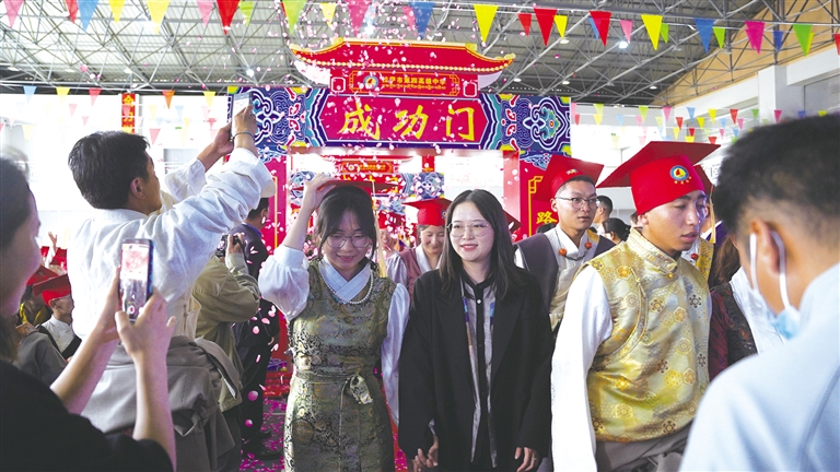 活動現(xiàn)場,每一位即將畢業(yè)的學生都要穿過象征著“成人、成才、成功”的三道門。家長代表手捧鮮花,不停地叮囑著孩子;老師們眼眶濕潤,看著即將離校的學生,充滿了不舍和期待。此刻,千言萬語涌入心間,匯成美好的期盼。