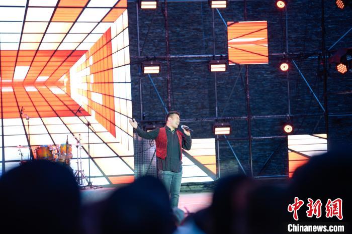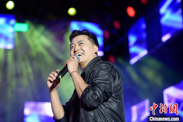 圖為歌手巴金旺甲正在演唱歌曲《故鄉(xiāng)》。貢嘎來松 攝