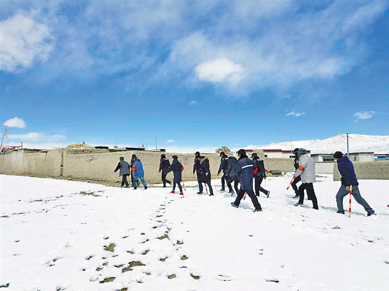 中國電信西藏公司駐霍爾巴鄉(xiāng)駐村工作隊與當?shù)嘏沙鏊谪暽4逯車_展巡邏。