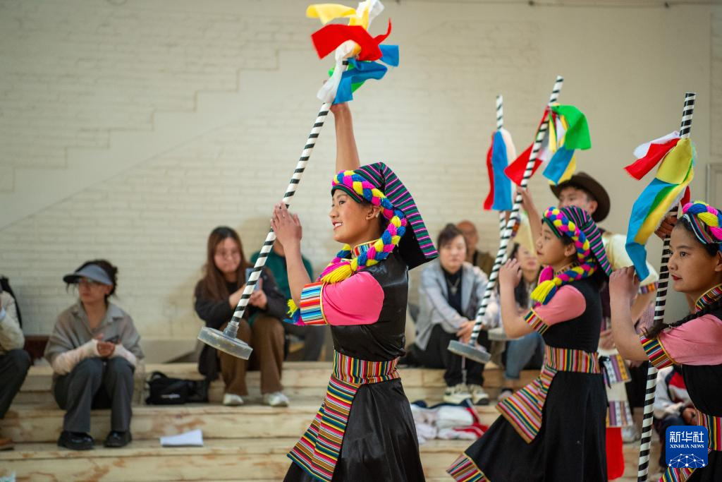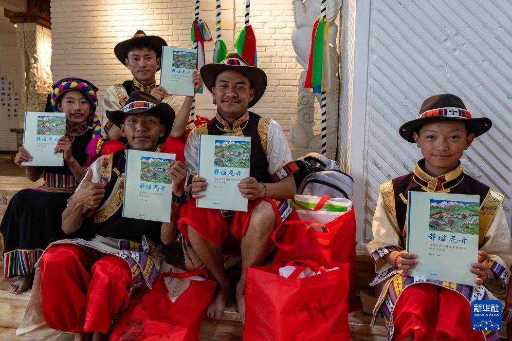 6月5日,拉薩市特殊教育學(xué)校的孩子們在新書發(fā)布現(xiàn)場表演舞蹈。新華社發(fā)(旦增努布 攝)