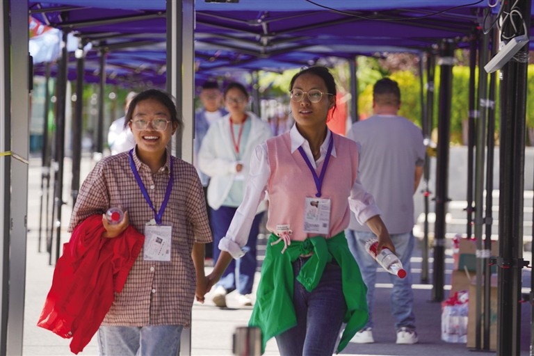 6月7日11時(shí)11分,三位考生同時(shí)走出拉薩中學(xué)考場的大門。“剛走進(jìn)考場時(shí),我還是有一點(diǎn)緊張。但開考后,我的心情就放松下來了,覺得今年語文高考試卷并不是特別難?!笨忌瓮嗉诱f。