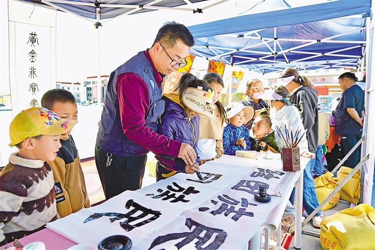 在阿里地區(qū)“文化和自然遺產(chǎn)日”活動中,孩子們在感受書法魅力。記者 達珍 洛桑旦增 攝
