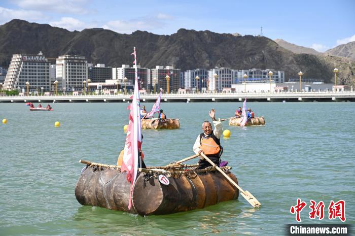 圖為牛皮船比賽現(xiàn)場(chǎng)。貢嘎來松 攝