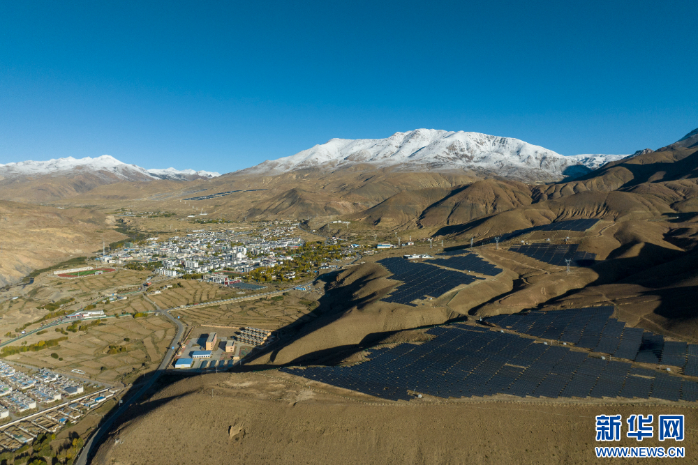 措美縣縣城附近的光伏電站(無人機(jī)照片)。新華網(wǎng) 旦增努布 攝