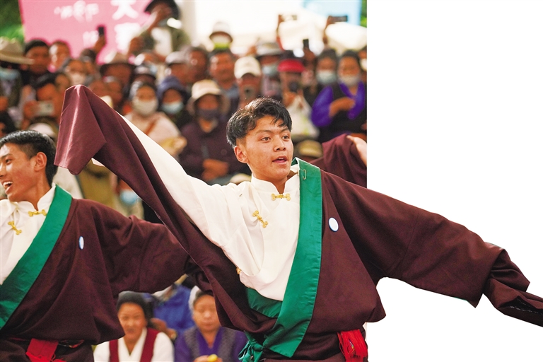 “我們幾個(gè)朋友退休后就加入了鍋莊舞健身隊(duì)伍,每天清晨大家不約而同地來(lái)到宗角祿康公園,以激昂的鍋莊開始一天的生活,這樣既能鍛煉身體,又能愉悅心情,大家都特別享受這種狀態(tài)?!庇^眾拉姆次仁說(shuō)。