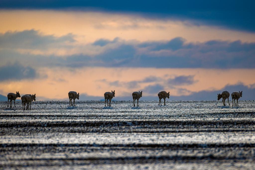 魯確塘草原上,夕陽(yáng)下的藏羚羊(6月16日攝)。新華社記者 晉美多吉 攝