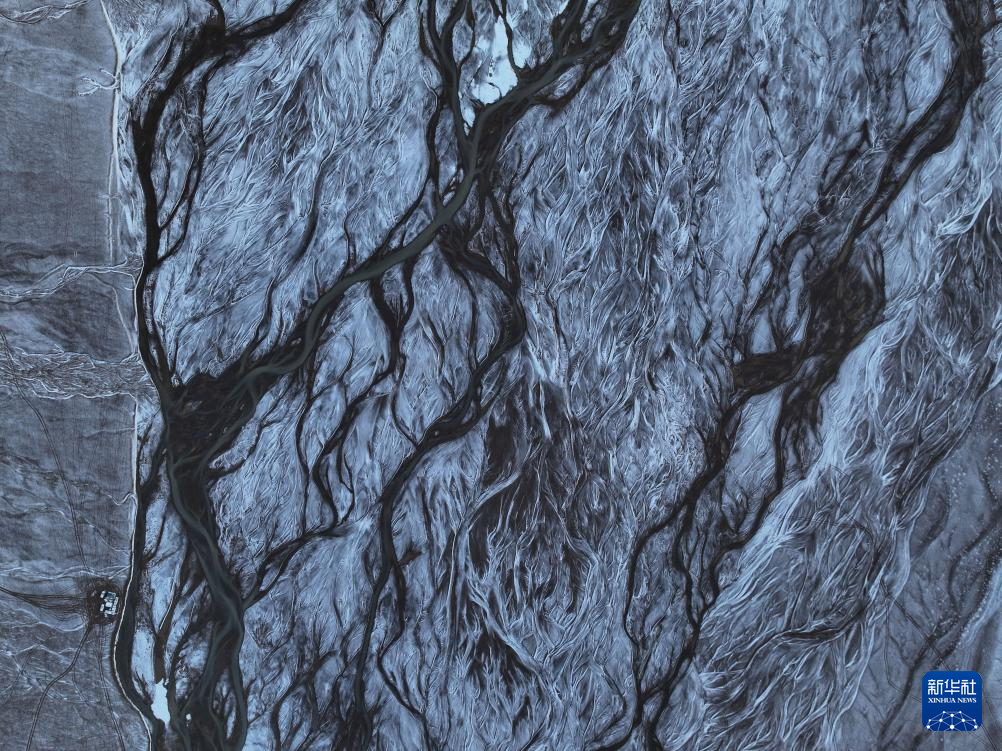 這是在甜水河畔荒灘雪地中向產(chǎn)羔地遷徙的藏羚羊(6月15日攝 無人機(jī)照片)。新華社記者 晉美多吉 攝