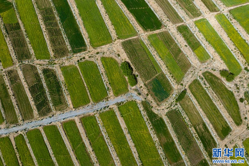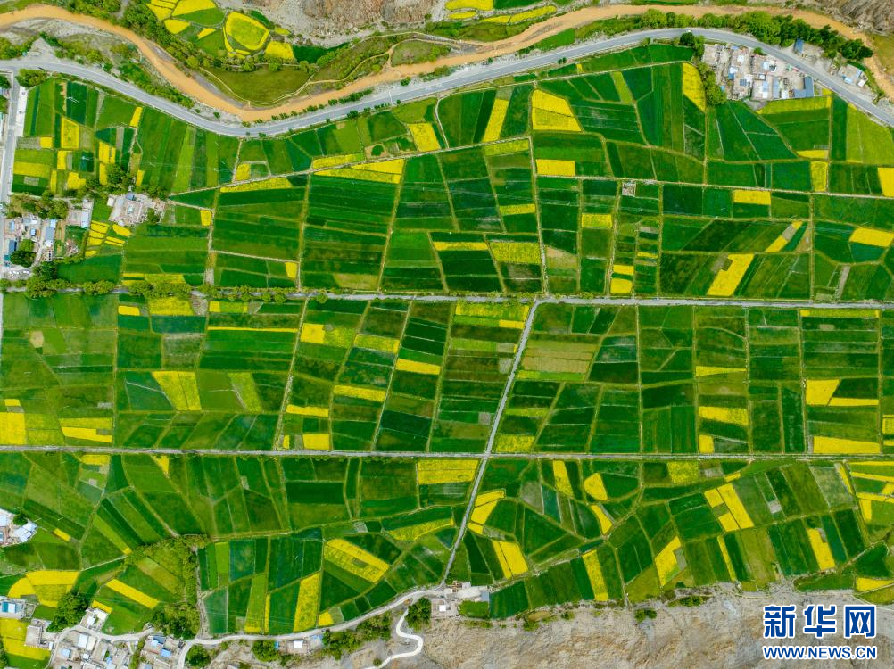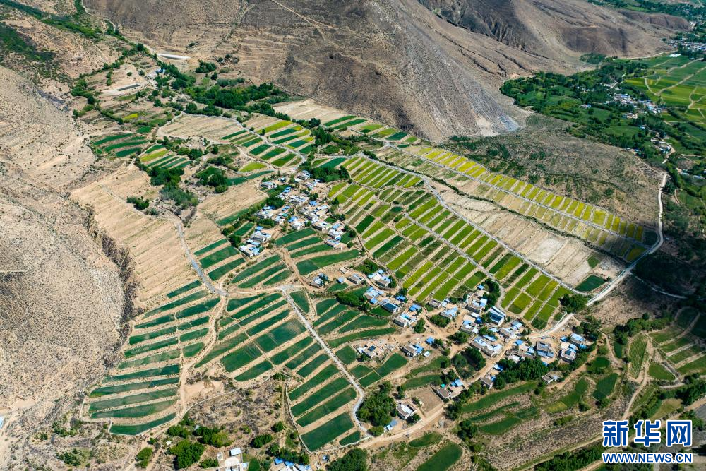 6月21日在西藏山南市乃東區(qū)境內(nèi)拍攝的田園風(fēng)光(無人機照片)。新華網(wǎng) 旦增努布 攝