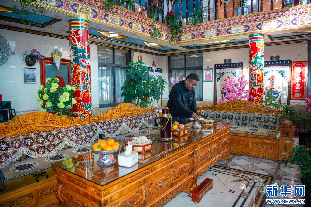 6月24日,扎西曲登社區(qū)村民在家準備迎接游客。新華網(wǎng) 旦增努布 攝