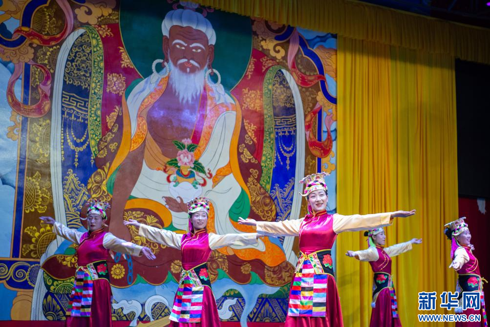 6月24日,群眾在國家級非物質(zhì)文化遺產(chǎn)雅礱扎西雪巴藏戲傳習(xí)基地表演傳統(tǒng)舞蹈節(jié)目。新華網(wǎng) 旦增努布 攝