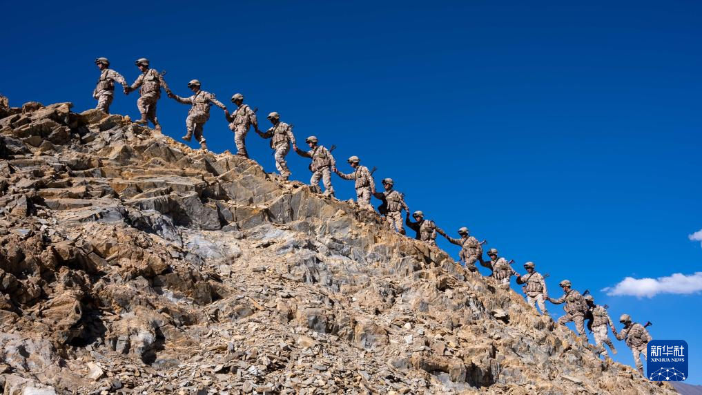西藏阿里軍分區(qū)普爾楚邊防連秋迪儉革拉哨所官兵在海拔5100米的高原執(zhí)勤站哨(6月29日攝)。新華社發(fā)(戴學(xué)武 攝)