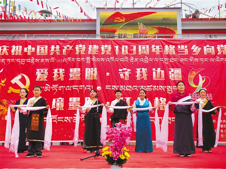 圖為“愛我墨脫 守我邊疆”慶祝中國共產(chǎn)黨建黨103周年文藝匯演現(xiàn)場(chǎng)。記者 王敏 通訊員 郎玲 攝