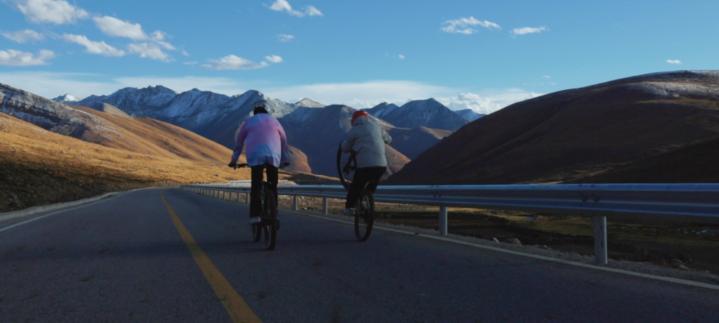 旦增吉美(左)和隊(duì)友在騎車(chē)的路上