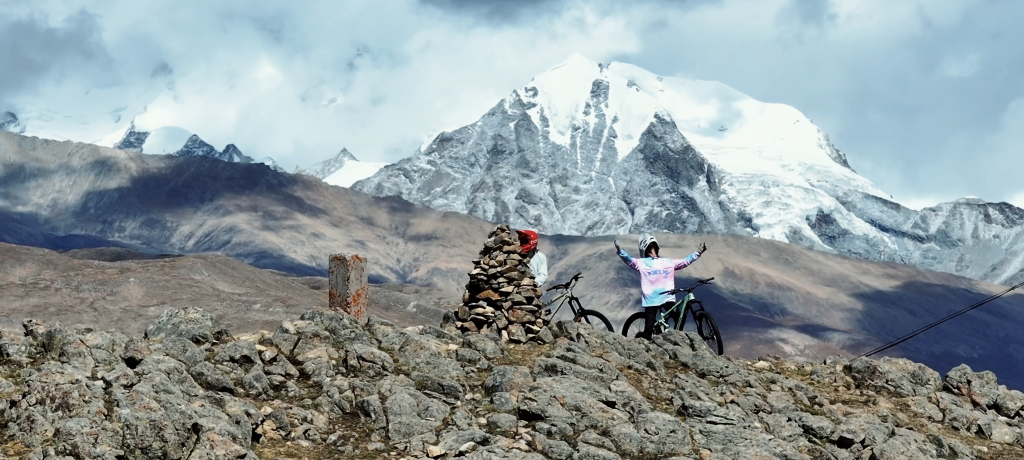 在高原速降,看著雪山和周?chē)男埴?/p>