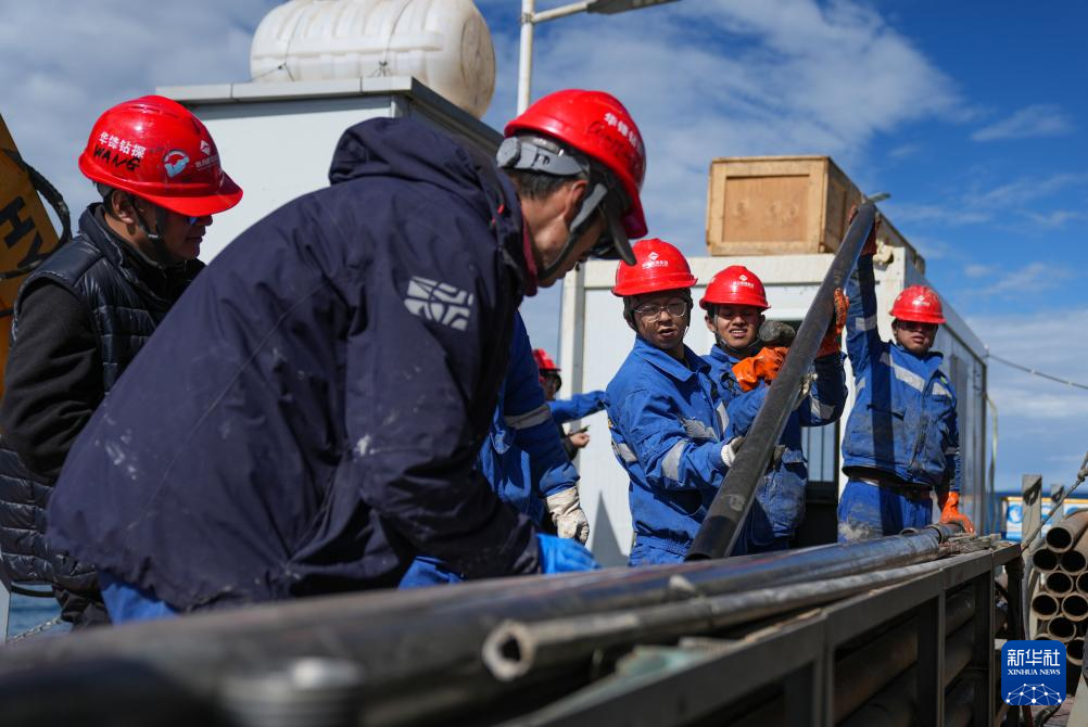 7月11日,鉆探人員在操作設(shè)備,準備進尺作業(yè)。新華社記者 晉美多吉 攝