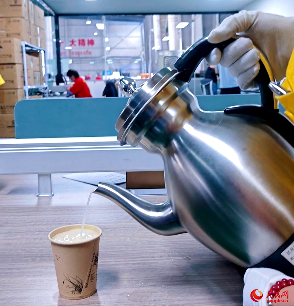 走進(jìn)生產(chǎn)車間旁的質(zhì)檢間,工作人員正在測(cè)試新上市的酥油茶壺。“這是新品,60秒就能做好一杯酥油茶,省時(shí)省力?!?/p>