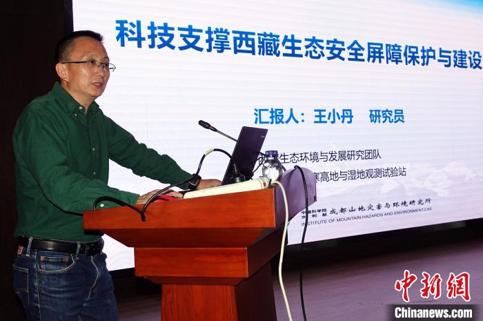 王小丹研究員介紹“科技支撐西藏生態(tài)安全屏障保護與建設”相關情況。中新網(wǎng)記者孫自法攝