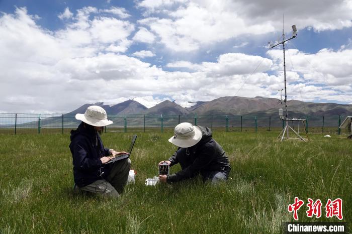 中國科學院申扎高寒草原與濕地生態(tài)系統(tǒng)觀測試驗站(申扎站)高寒濕地觀測試驗場,科研人員采集相關觀測數(shù)據(jù)。中新網(wǎng)記者孫自法攝