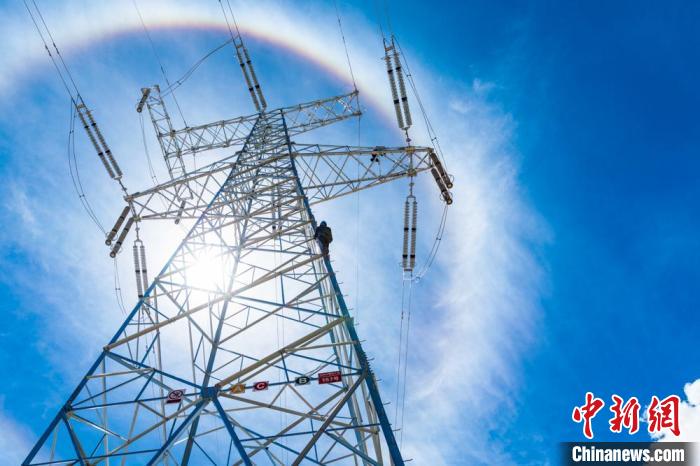 資料圖為電力施工人員在西藏阿里聯(lián)網(wǎng)工程開展鐵塔檢修作業(yè)。趙清鵬 攝