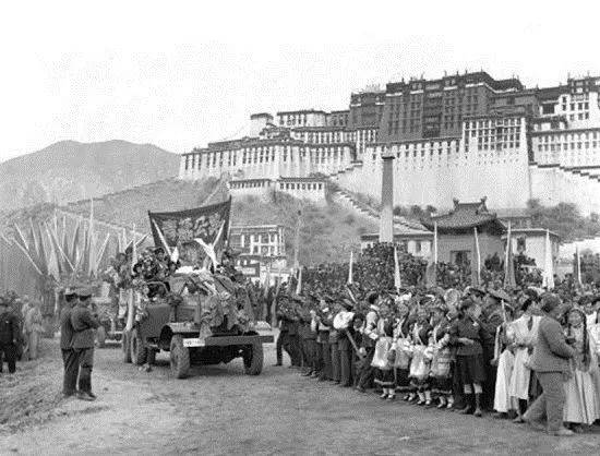 1954年12月25日,川藏、青藏公路全線通車,猶如祖國伸出雙臂,緊緊擁抱著西藏,西藏“唐蕃古道人背畜馱,棧道溜索獨木舟”的歷史被永遠定格在了那一天。布達拉宮前,數(shù)萬各族同胞載歌載舞,爭相把一條條潔白的哈達獻給筑路勇士。