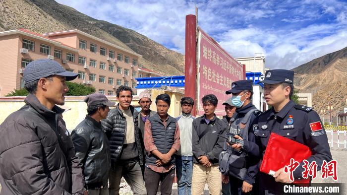 圖為普蘭邊檢民警向中尼邊民普及防災(zāi)防汛知識(shí)。鐘悅祺 攝