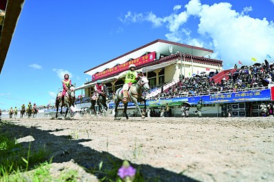 據(jù)了解,今年主辦方從青海等地邀請了特色高原馬種前來展示。活動現(xiàn)場,記者看到,騎手們身著民族服飾,英姿颯爽;駿馬裝飾五色綢帶,躍躍欲試;觀眾扶老攜幼,笑逐顏開。今年的賽馬節(jié)還新增了馬上刀術(shù)、馬上烏爾朵、騎馬射擊、騎馬拾哈達(dá)等四項賽馬競技活動。