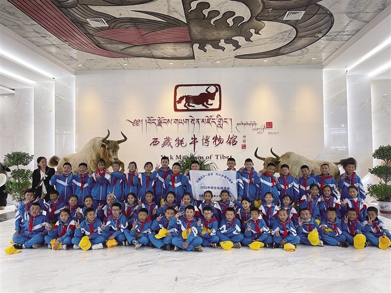拉薩市小學生開展“石榴花開一家親 同心共筑中國夢”主題研學實踐教育活動,走進西藏牦牛博物館。圖由拉薩實踐基地提供