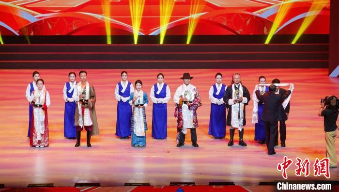 閉幕式晚會上,西藏自治區(qū)文化藝術最高獎——“格?;ā豹労臀鞑厝盒仟劶跋嚓P藝術賽事獎項逐一揭曉。其中,格?;▎雾棯?個,格?;ù螵?個。此外,晚會上宣布并聘任知名學者蒙曼教授,著名歌唱家譚維維為西藏文化大使,新東方教育科技集團董事長兼總裁俞敏洪為西藏旅游推廣大使。