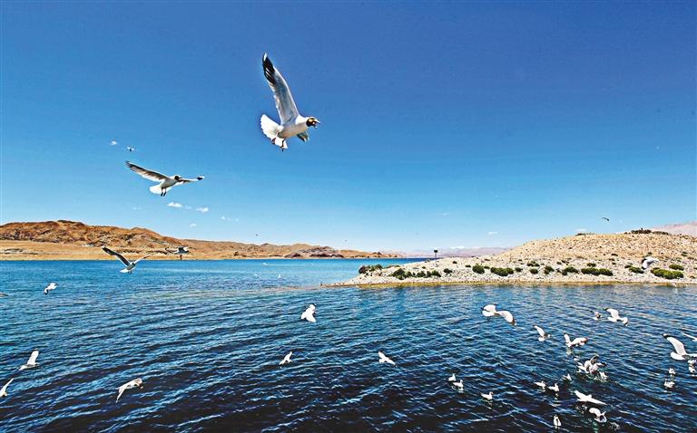“現(xiàn)在的拉薩河更像一個湖,湖寬水深、濤聲陣陣,金色的陽光灑滿湖面,一陣風(fēng)吹來,掀起了不少漣漪。成群結(jié)隊的候鳥在湖面自由自在地翱翔、嬉戲,讓人心曠神怡?!卑頃r分,家住頓珠金融城的拉薩市民平措在拉薩河三號閘上悠閑散步、感慨地說道。