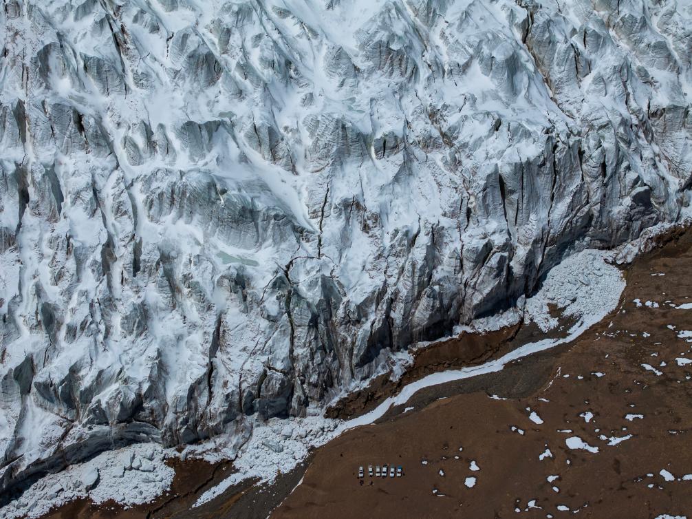 這是2024年5月在西藏自治區(qū)那曲市尼瑪縣拍攝的藏色崗日冰川(無人機(jī)照片)。新華社記者 姜帆 攝